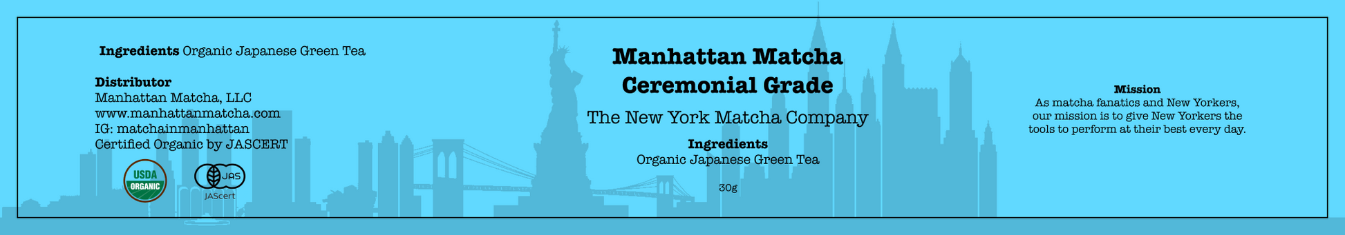 Why is the label blue? Matcha is green. In traditional Japanese culture, blue was thought to help to fend off evil spirits. If we take this analogy one step further, blue can help us ward off the daily stresses that are known to every New Yorker and instead give us the calm, cool focus to power on.